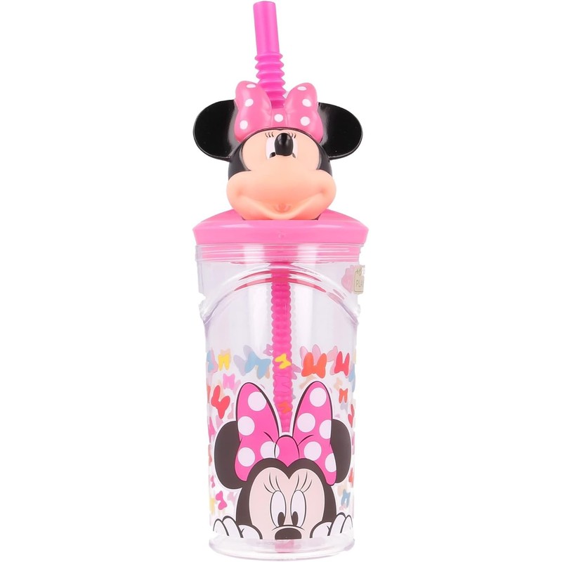 Golddunes 3D Cartoon Character Kids Figurine Re-Usable Plastic Tumbler Beaker with Re-Usable Flexi Straw - 360ml (Minnie Mouse)