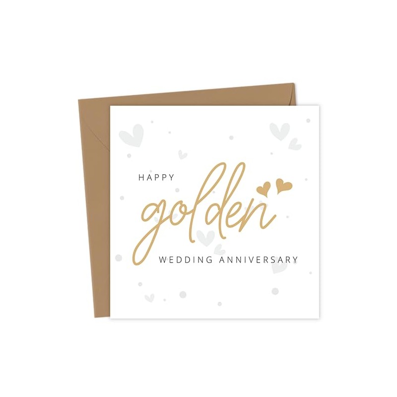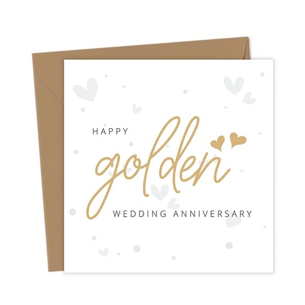 - 50TH ANNIVERSARY CARD - This lovely wedding anniversary card is the perfect way to celebrate your first anniversary together with your husband or wife. This cute card from the heart is also perfect to congratulate a happy couple on this golden anniversary milestone.