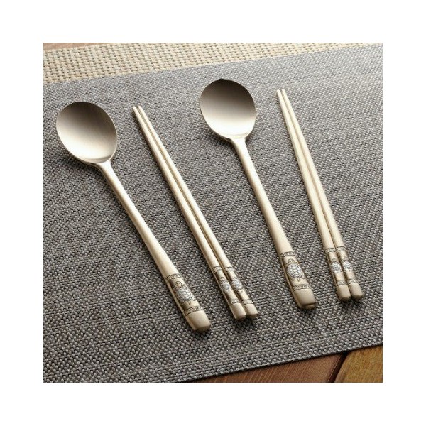 Golden Bell turtle silver inlaid organic couple spoon set / 골든벨 거북 은상감 유기 부부수저 세트