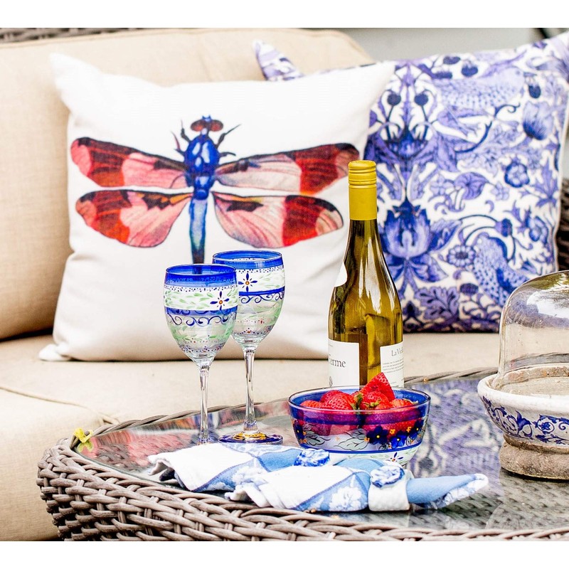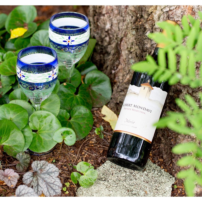 Golden Hill Studio Hand Painted Wine Glasses Set of 2 - Barcelona Blue Collection - Hand Painted Glassware by USA Artists - Unique and Decorative Wine Glasses, Kitchen Table Décor