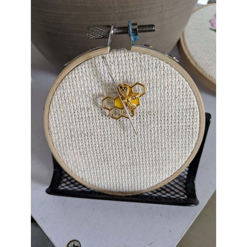 • The needle minder comes with two magnets, one attached to the back, and one to hold it down onto your fabric from the back.