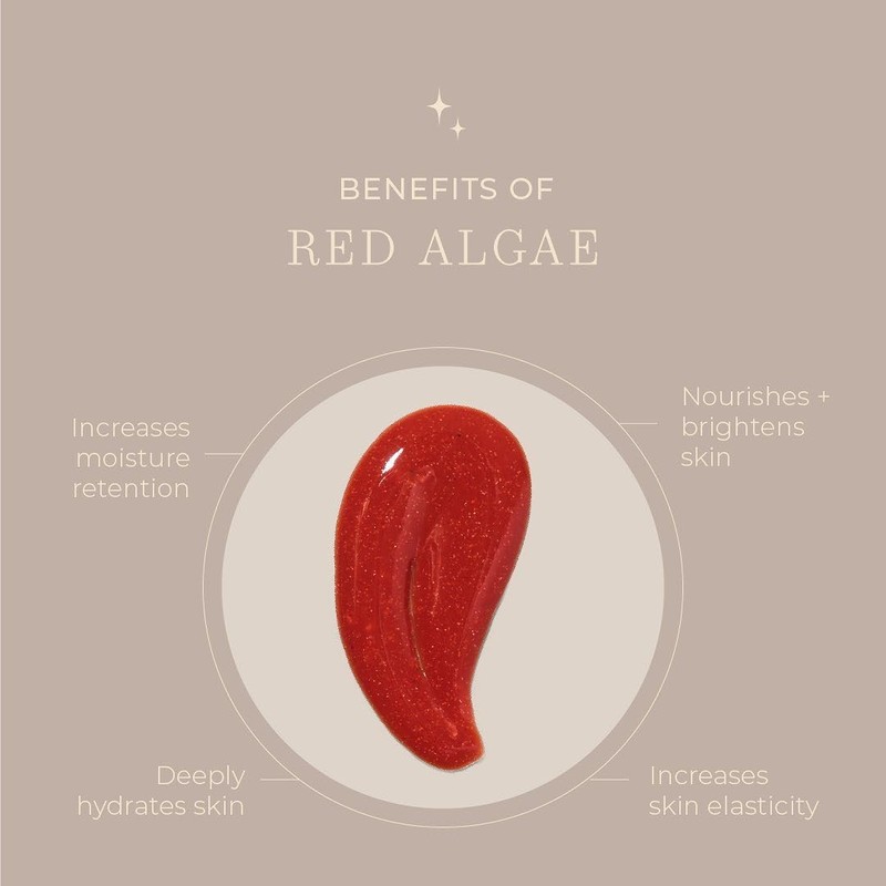 - Encourages skin brightening from red & brown algae content and can diminish appearance of hyperpigmentation and appearance of age spots