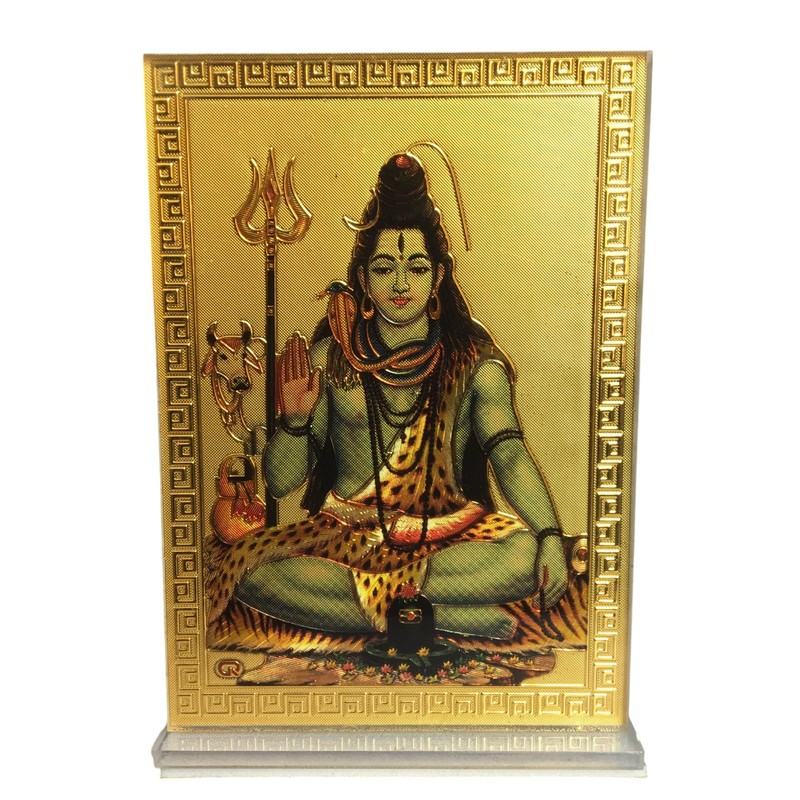 Golden Mahadev Ji Hindu Religious Photo Frame With Stand | Golden Shiny | For Car Dashboard,Home And Mandir (2.8x0.8x3.8 inches.)