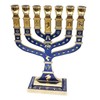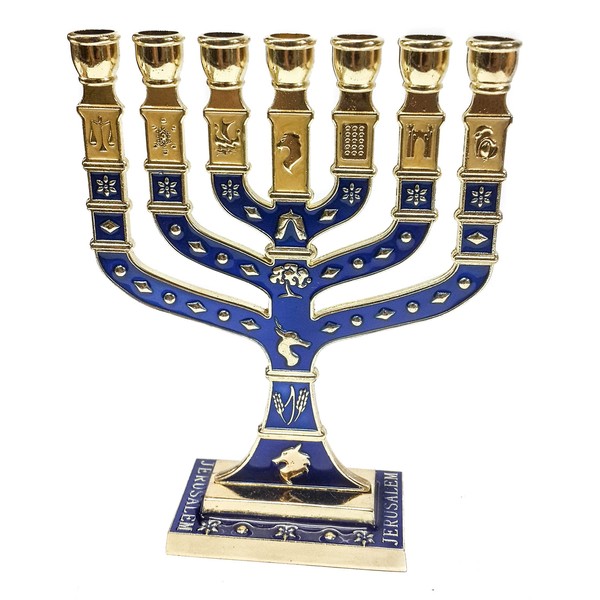 Golden Menorah 7 Branch 12 Tribes Of Israel Jerusalem Menora Blue Enamel 4.7"