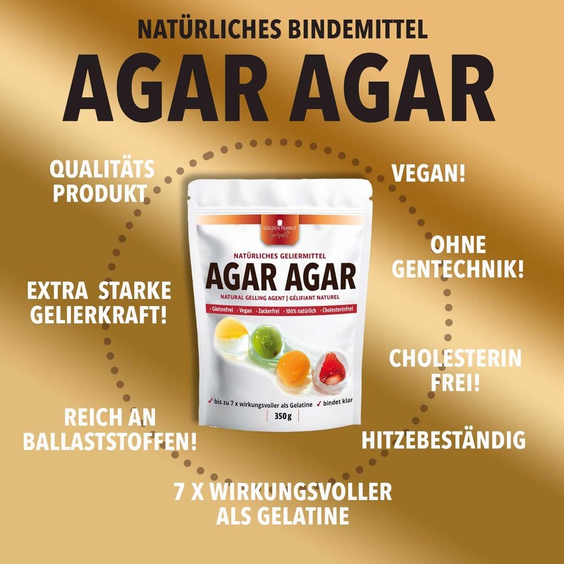 GOLDEN PEANUT Gourmet Agar Agar Ground 350g - Agar Agar Powder Natural Vegan Gelling Agent No Additives High Yield Hydrocolloid