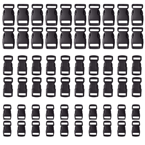 Golden Pearl 5/8, 1/2, and 3/8 inch(20 Each) Black Plastic Contoured Side Release Buckles for Paracord Bracelets-60pcs