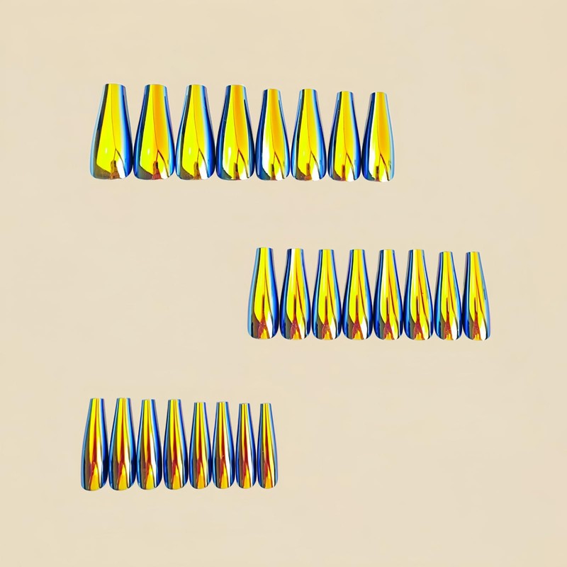 Golden Press on Nails Medium Length Coffin Artificial Fake Nails with Chrome ...