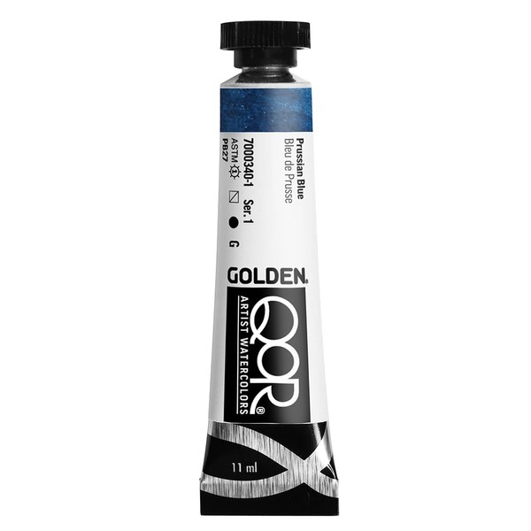 QoR watercolors (pronounced core and meaning Quality of Results) are made by Golden Artist Colors and feature an exclusive Aquazol binder used in conservation. This creates vibrant, intense colors with more pigment density than traditional watercolors, and they stay brilliant even after dry. This formulation provides exceptionally smooth transitions, excellent glazing qualities, and greater resistance to cracking or flaking. Grounds and Mediums are also available to expand the creative opportunities while painting. Prussian Blue, 11ml tube.