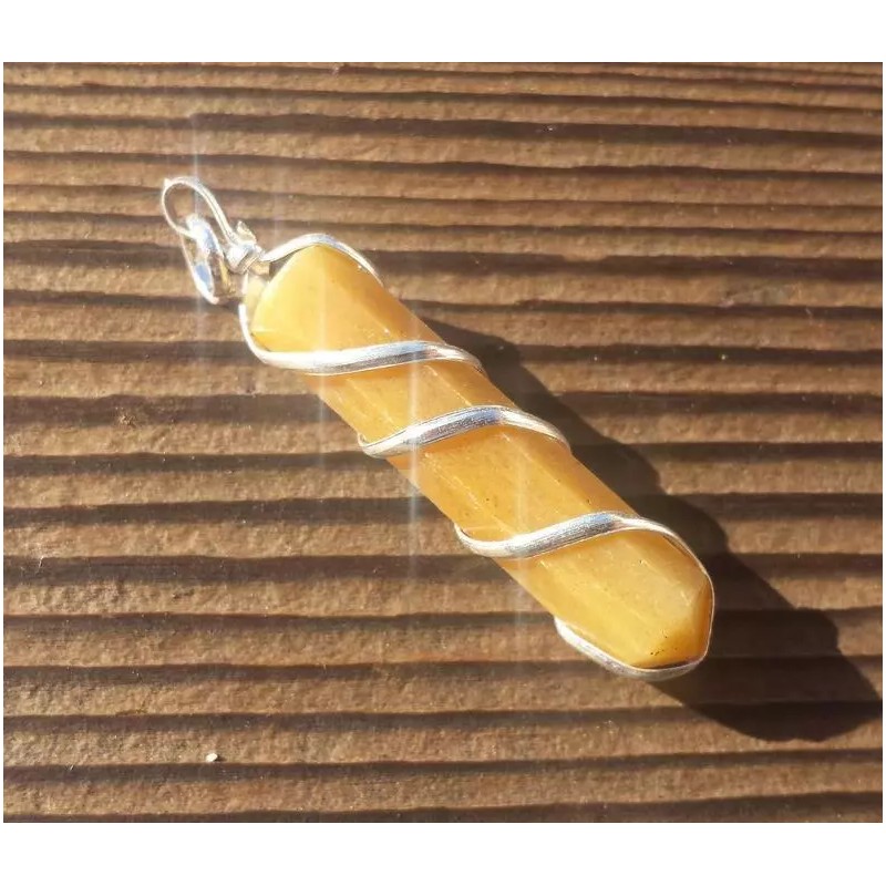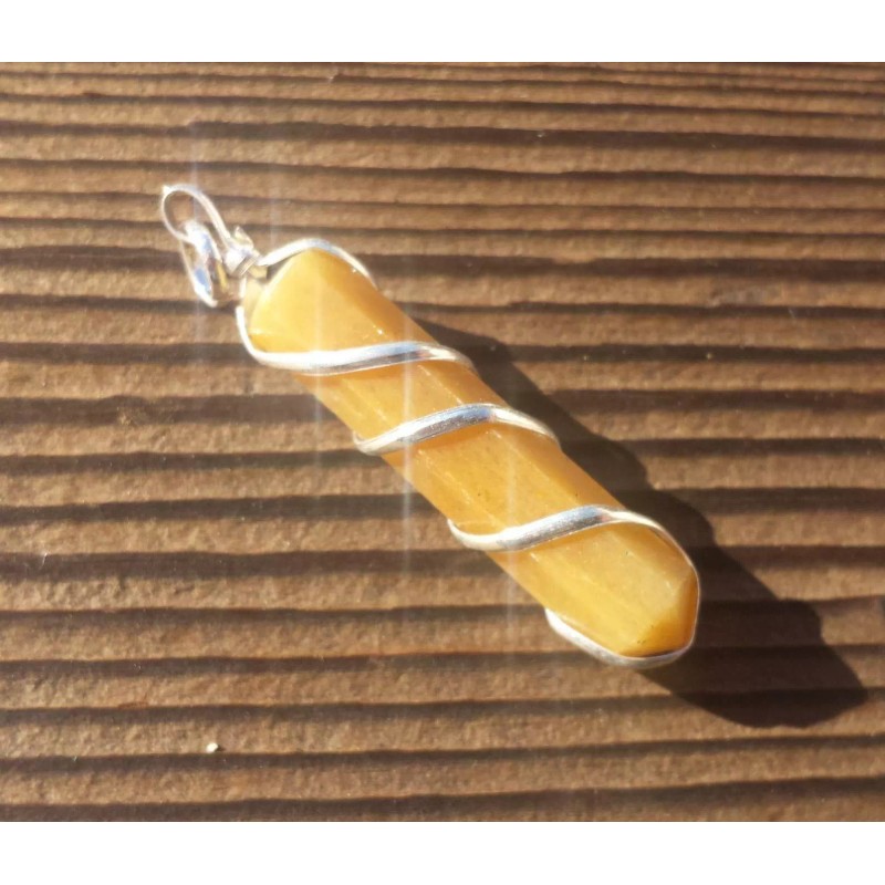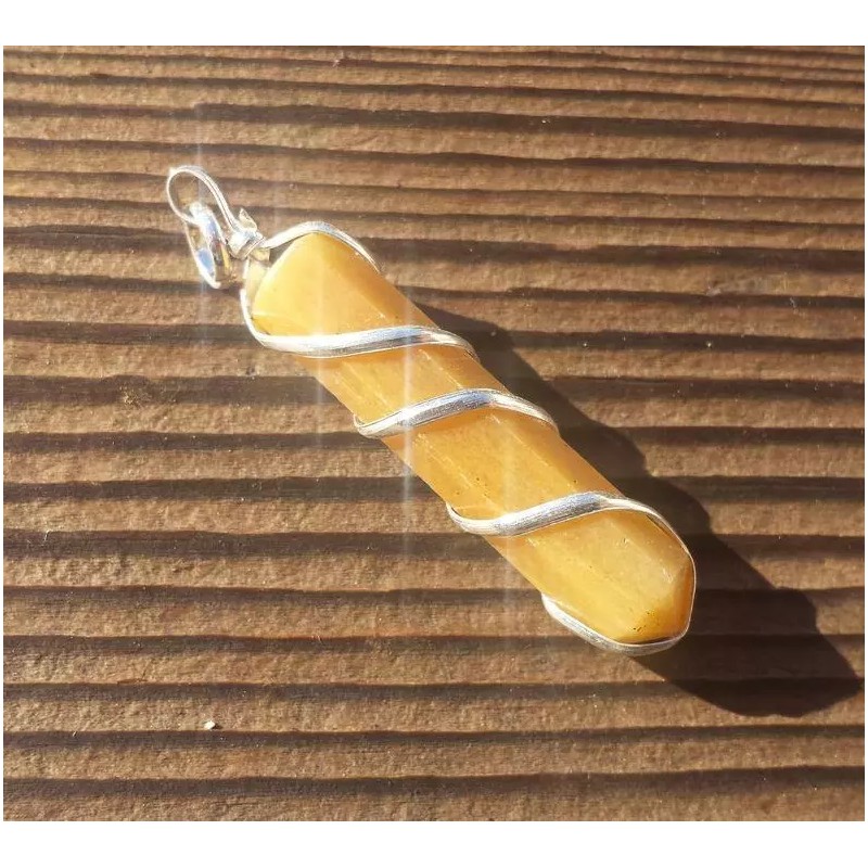 GOLDEN QUARTZ SPIRAL WIRE WRAPPED PENCIL POINT PENDANT GEMSTONE