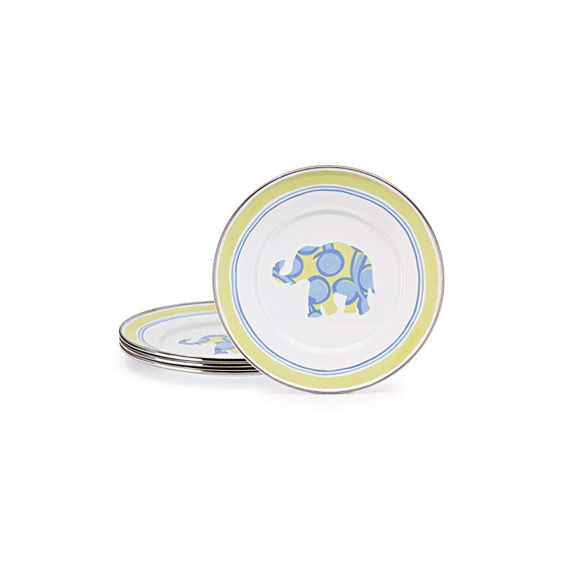 Golden Rabbit Enamelware - Elephant Pattern - Set of 4-8.5" Sandwich Plates