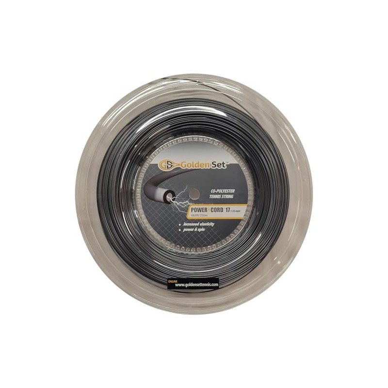 Golden Set Power Cord 17g (1.30mm), Reel (660ft/200m), Polyester Tennis String (Dark Grey)