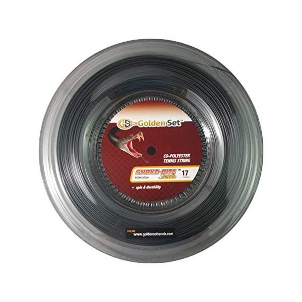 Golden Set Snake-Bite Smooth 17g (1.25mm), Reel (660ft/200m), Polyester Tennis String (Black)