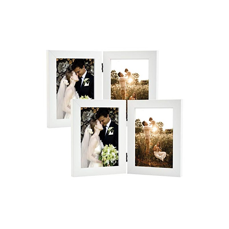 Golden State Art, Decorative Hinged Table Desk Top Picture Photo Frame, 2 Vertical Openings, with Real Glass (5x7 Double, White, 2-Pack)