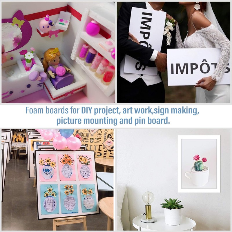 Foam Board is used for backing matted prints, photos, pictures or other artworks that needs some additional support. Thickness:1/8". Both side White.