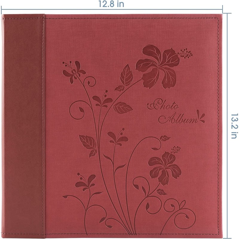 Golden State Art, Overall Size 12.8x13.2 Self-Adhesive Magnetic Photo Album DIY Scrapbook for Various Size Pictures -Leather Floral Cover (Marron,40 Pages/20 Sheets,No Cover Opening)