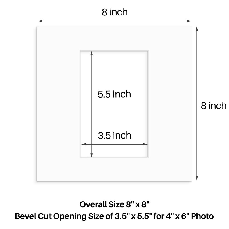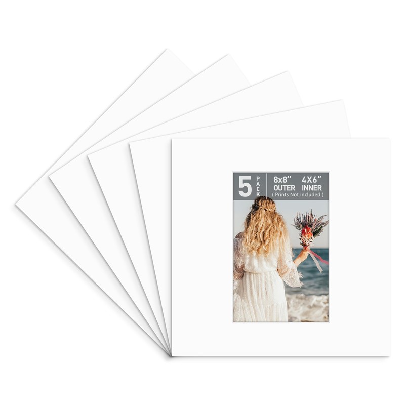 Golden State Art, Pack of 5 Acid Free Bevel Cut 4-Ply Thickness White Core Picture Mats for Photos (White, 8x8 for 4x6 Photo)