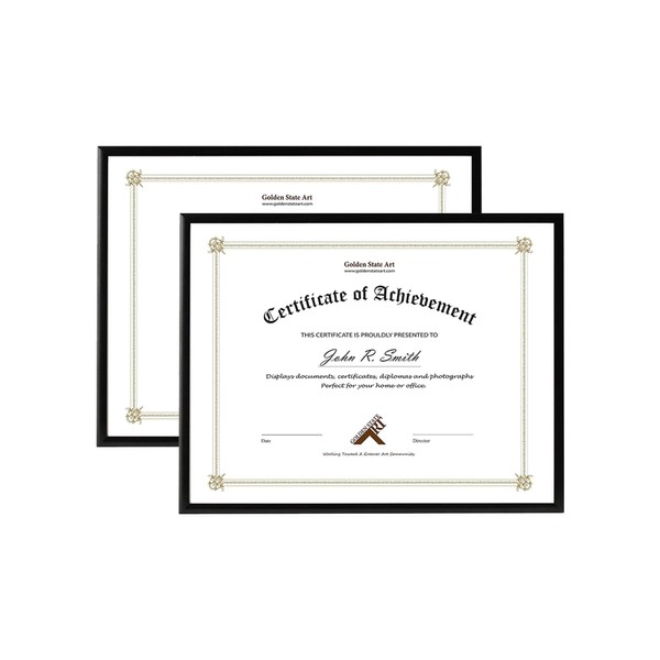 Golden State Art, Set of 2, 8.5x11 Black Aluminum Frame for Certificate/Photo...