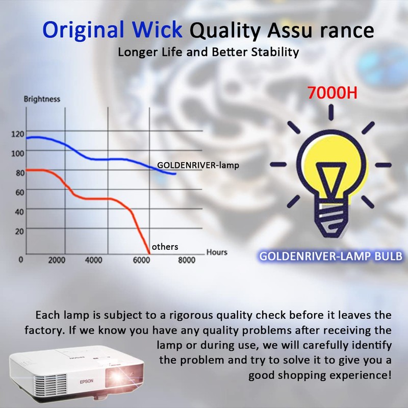 • ✅Life Time (STD): 6000, Life Time (ECO): 7000. The brightness will be slightly reduced after 6500 hours, which is longer than other products on the market and the output is longer and more stable.