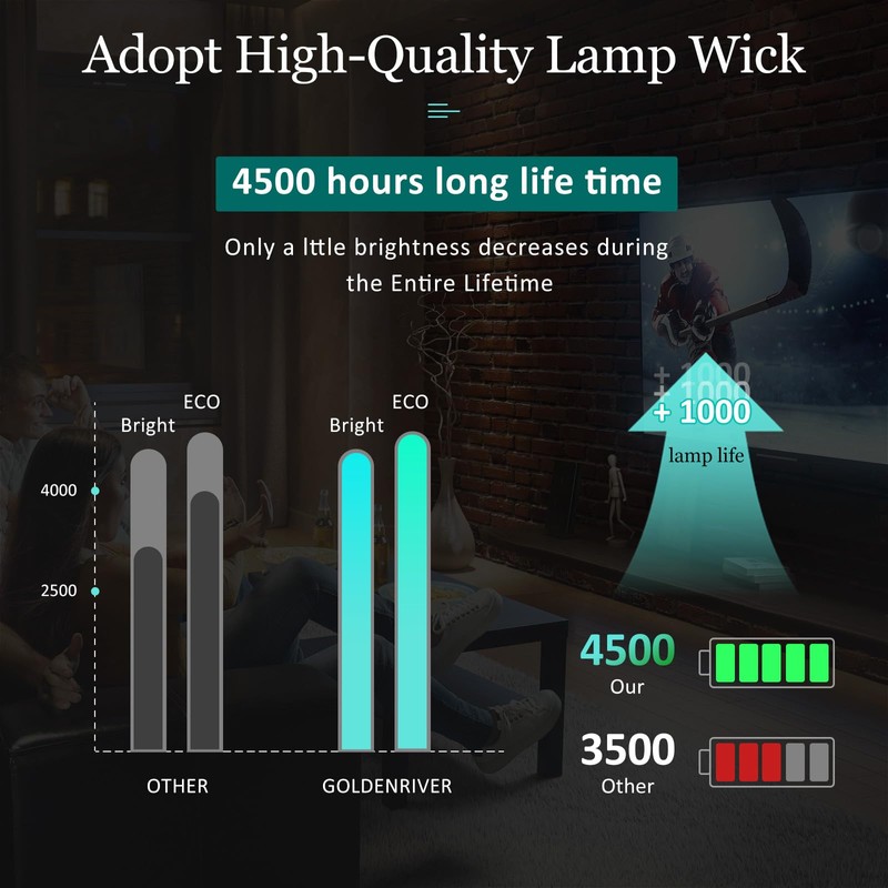 - ✅Life Time (STD): 4000, Life Time (ECO): 5000. The brightness will be slightly reduced after 4500 hours, which is longer than other products on the market and the output is longer and more stable.