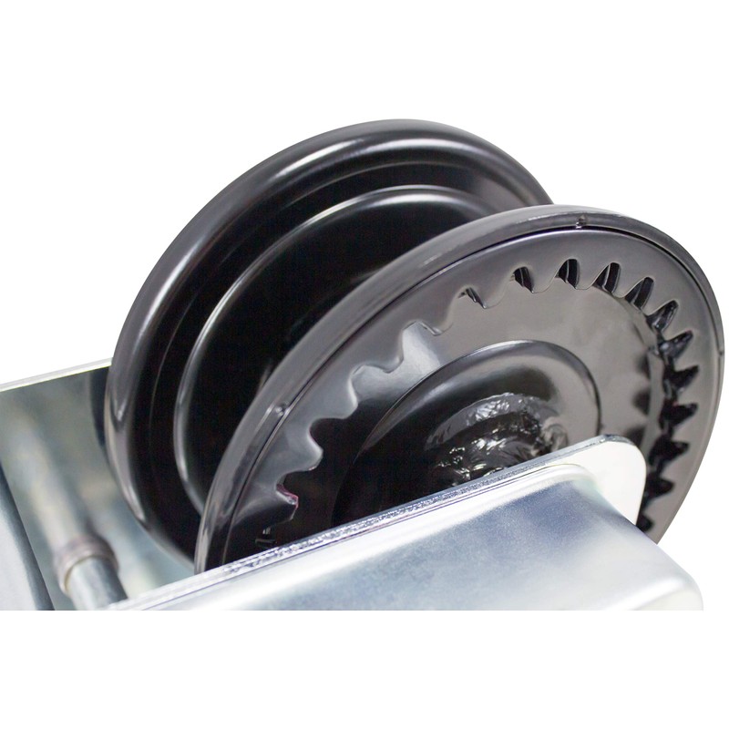 - Extra heavy duty construction and gear cover enclosed braking mechanism