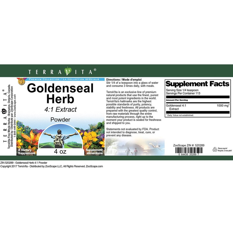 - Goldenseal Herb 4:1 Powder (4 oz, ZIN: 520289)