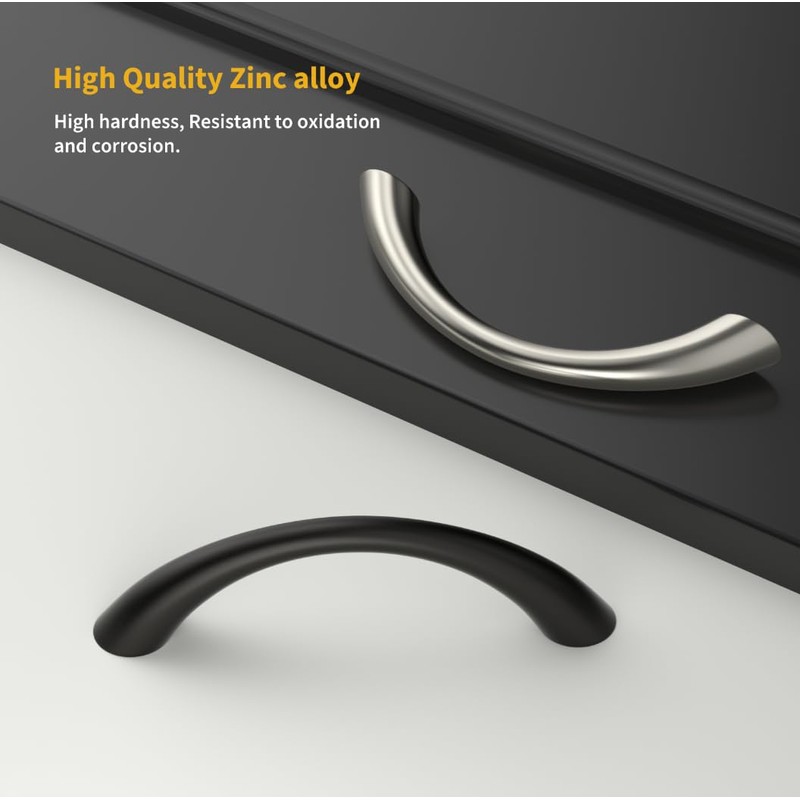 • 【Unique Curved Design】The fusion of straight and curved surfaces makes the space more dynamic and adds artistic temperament to your cabinet.The handles we use curved design with smooth surface to avoid the sharp angle. Perfect silver cabinet pulls, suitable for your kitchen cabinet, cupboard, wardrobe and dresser drawers.