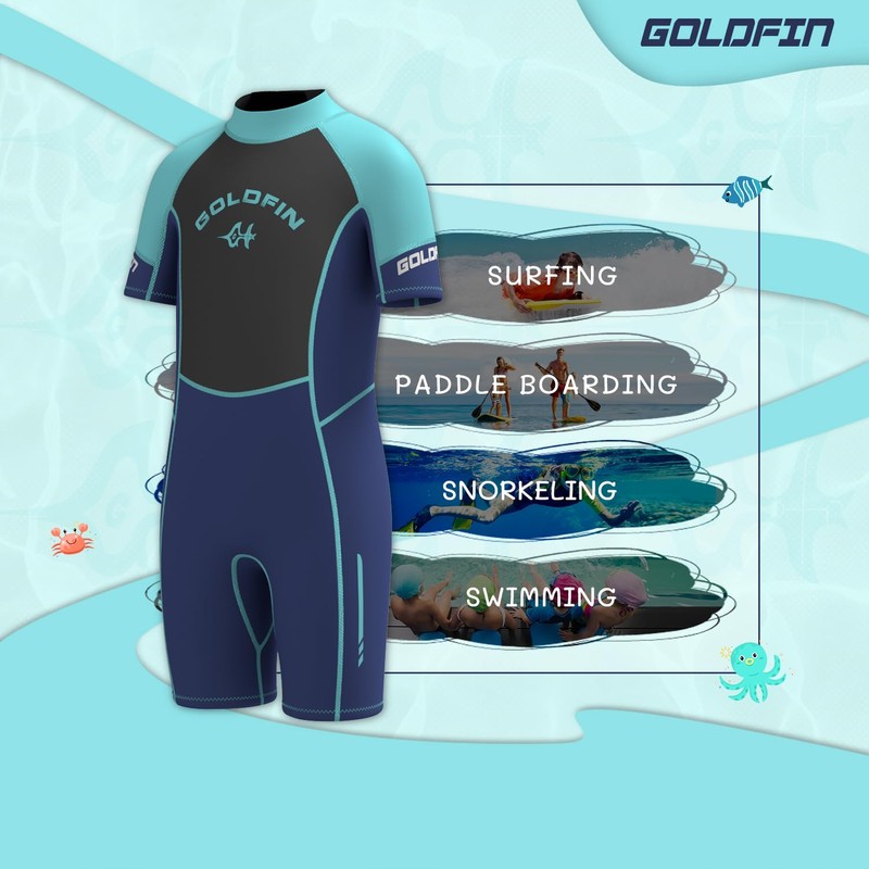 Goldfin Kids Wetsuit, 3mm Shorty Wetsuits for Boys Girls Neoprene Wet Suits Keep Warm in Cold Water Surfing Swimming Snorkeling Diving