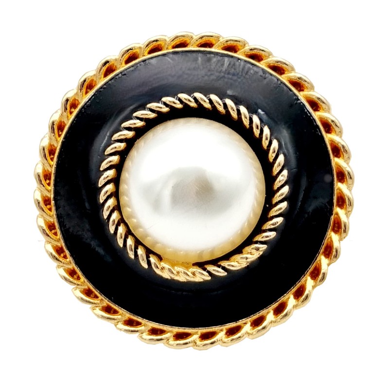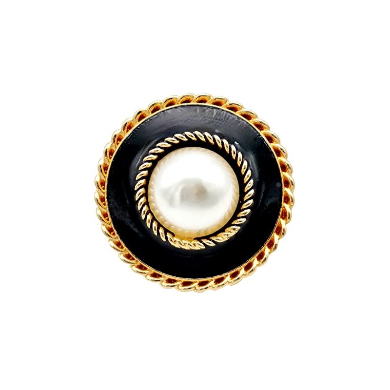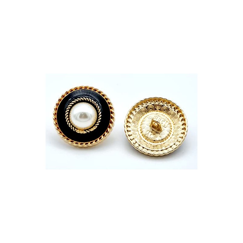 Goldgöre 5 Metal Buttons Black Gold 25 mm with Pearl with Eyelet for Sewing