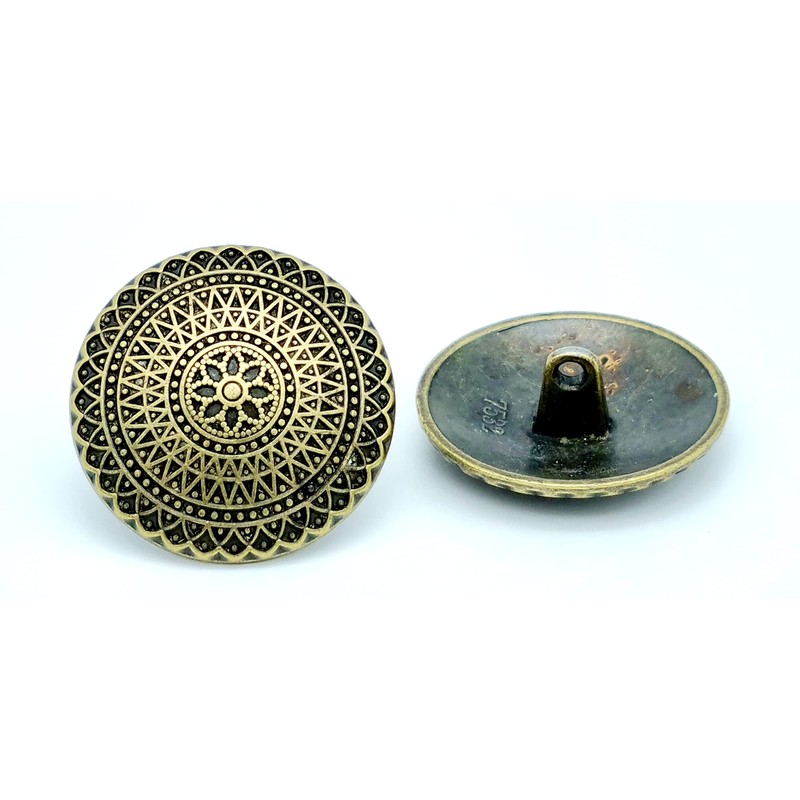Goldgöre 5 Metal Buttons Golden Patterned 25 mm with Eyelet for Sewing