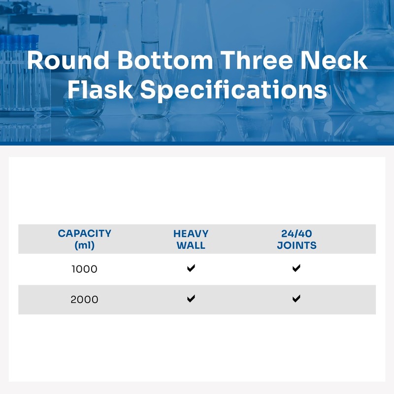- Heavy-Duty Walls: Our round bottom three-neck flask is made from durable and heavy-duty walls, ensuring that your flask is built to last and can handle whatever your experiments throw at it; Whether your experiments involve extreme temperatures of extremes pressures, you're in good hands