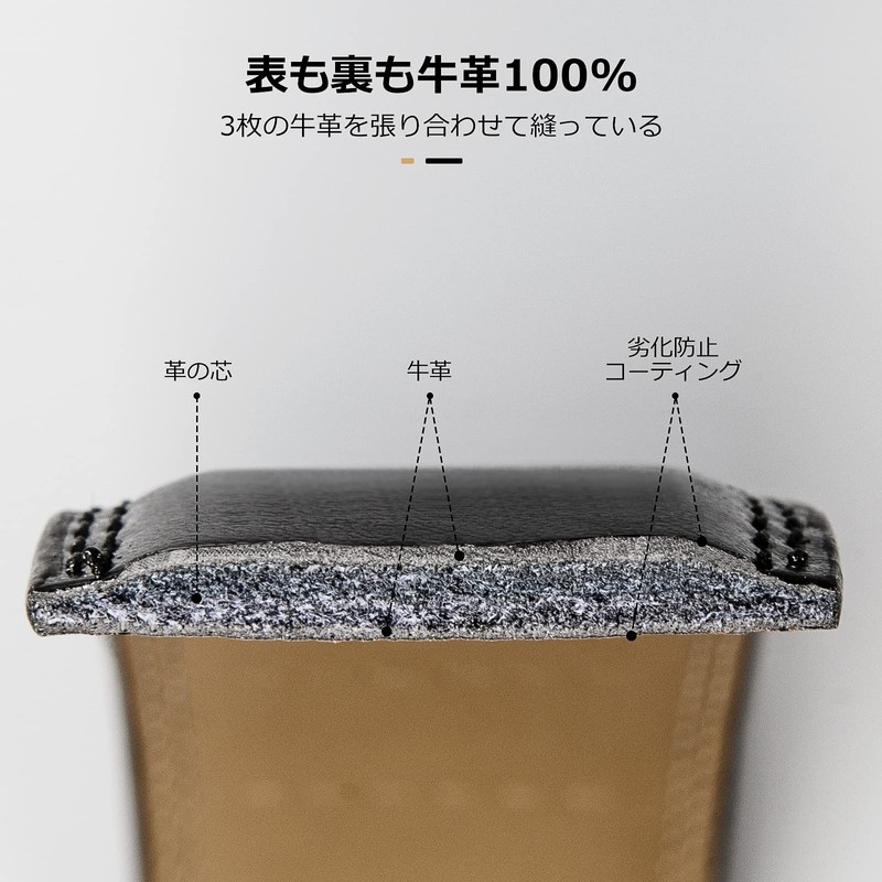 - 100% Cowhide Leather on Front and Back: Made of 100% carefully selected cowhide leather. 3 layers of cowhide leather are sewn together and the center core is made of cowhide leather, so it is comfortable to wear and comfortable to wear, and there is no need to worry about it becoming stiff as you use it like a synthetic core. The surface and the cover are coated with an anti-aging coating to reduce pilling, and the leather on the front and back. Suitable for various styles and occasions such as business, casual, jeans, etc