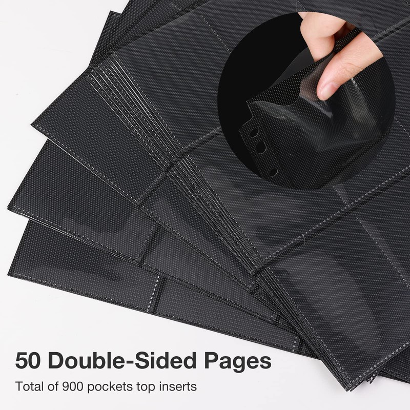 GoldOars 900 Pockets Black Trading Cards 50 Pages Pro 18-Pocket Empty Transparent Trading Folder Folder Pages for Trading Cards
