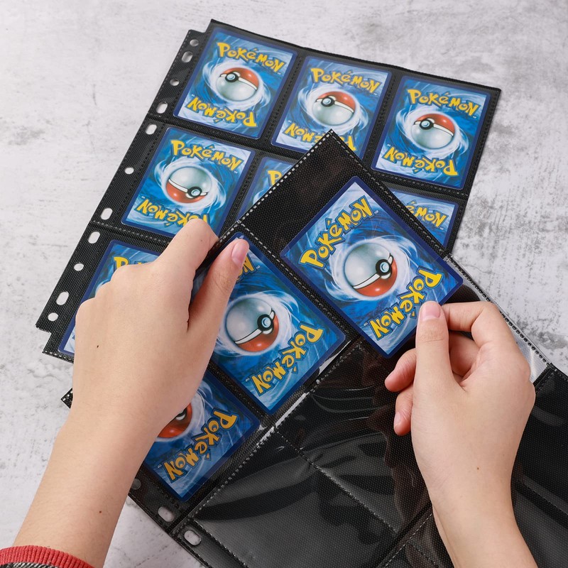 - High-quality PP material is durable and on the left side of the trading card compatible with Pokemon film there are 11 perforations. Therefore, the trading card sleeves are not only suitable for standard A4 folders, but also for scrapbooking.