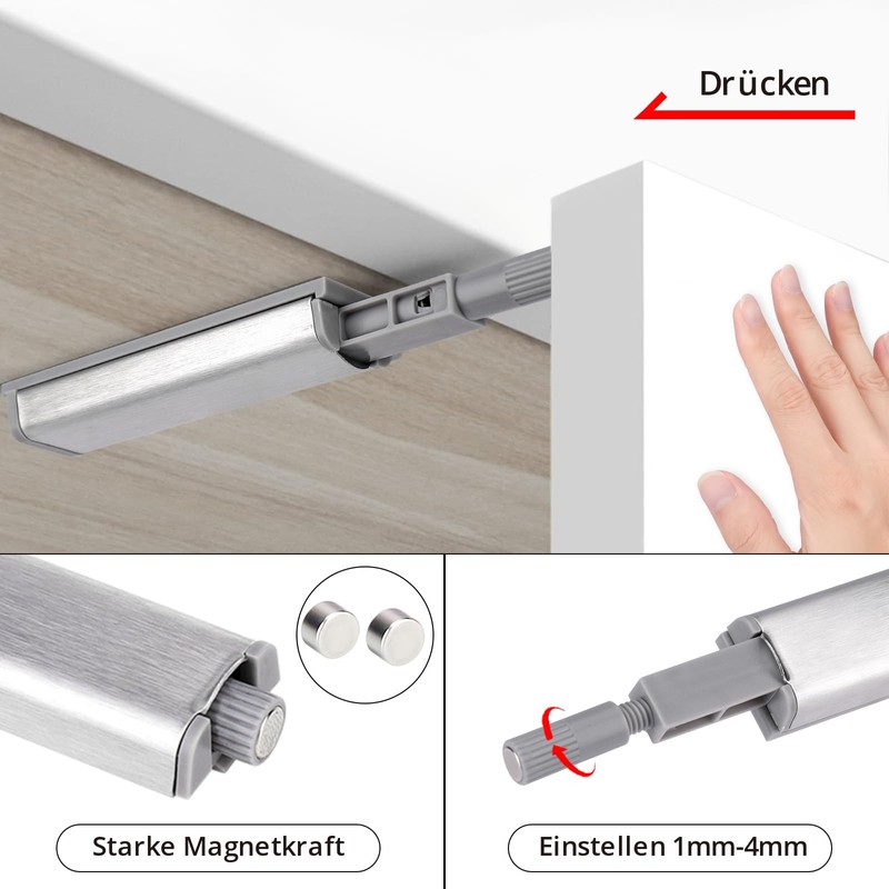 The magnetic tip can be adjusted to 1-4 mm, it is suitable for all types of cabinets, doors, drawers, wardrobes, kitchens. Keep them securely closed or open. It is a good helper in your home.