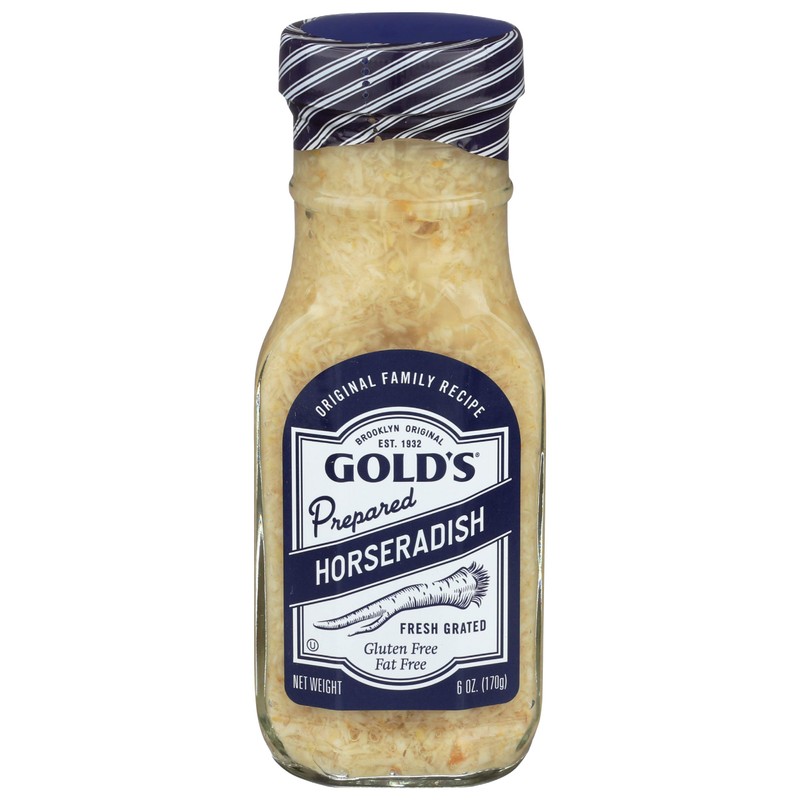 Gold's prepared horseradish is a gluten and fat free condiment that's perfect for spicing up favorite sandwiches, snacks and recipes. Crafted following our original family recipe of freshly grated horseradish with a touch of vinegar and salt to taste, this horseradish has a distinct flavor and notable aroma. This container has 6 ounce of prepared horseradish.