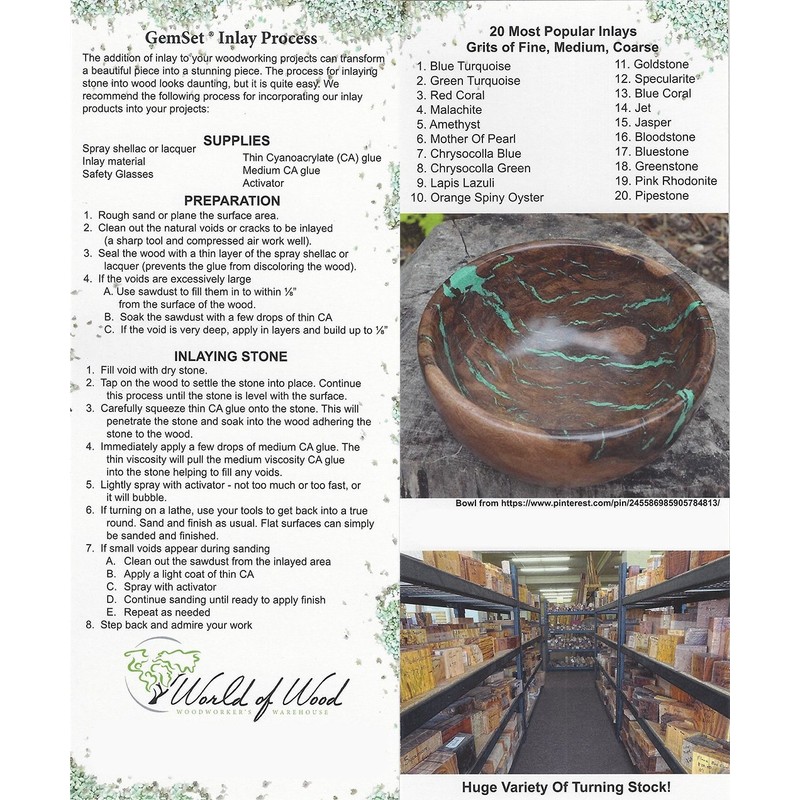 • Included is your choice of either: a half-ounce (14 grams), one ounce, or 2 ounces of crushed Inlay