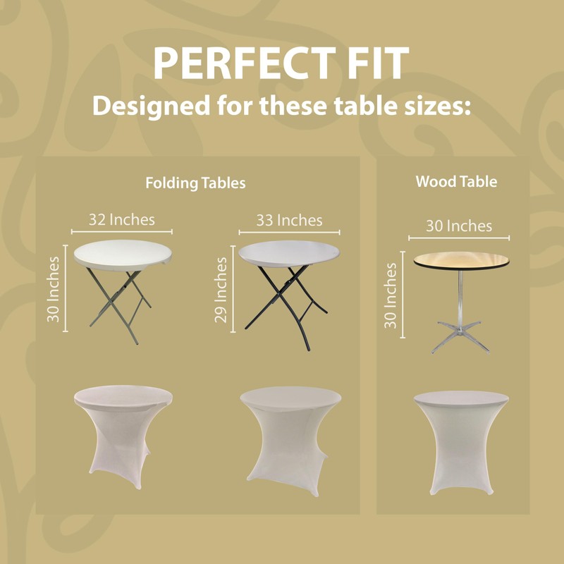 - Perfect Fit - This tablecloth is specifically designed to fit several table sizes perfectly: 32-inch diameter x 30-inch tall round folding tables, 33-inch diameter x 29-inch tall round folding tables, and 30-inch diameter x 30-inch tall round wood tables. This ensures a sleek, professional appearance with no excess fabric or wrinkles.