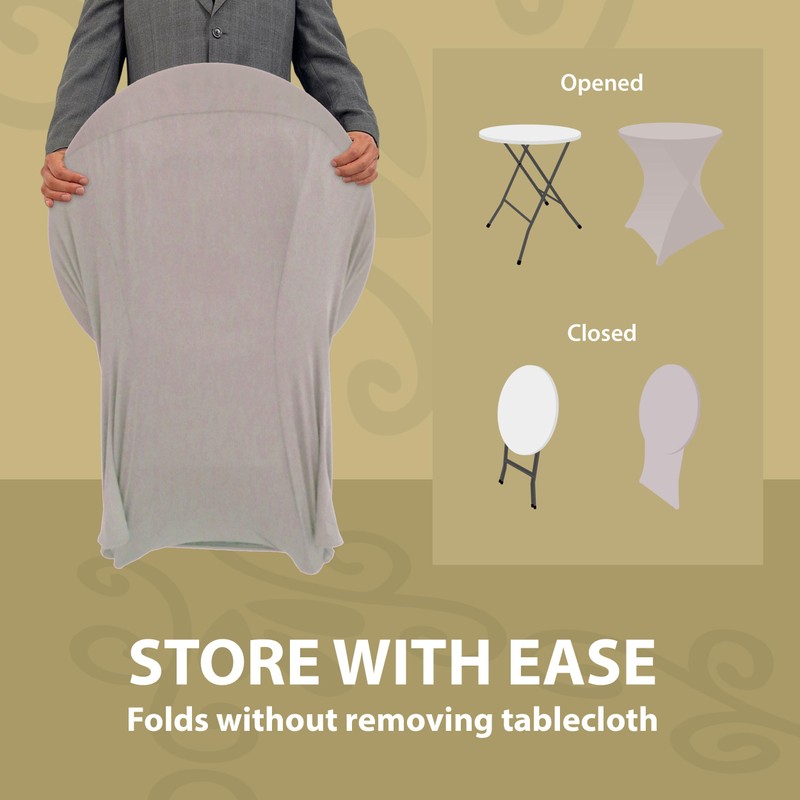 Goldstream Point Grey 32 Inch Round x 30 Inch Tall Spandex Cocktail Tablecloth Folding Cover Stretch