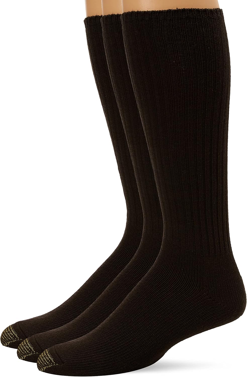 GOLDTOE Men's Cotton Fluffies Crew Socks 3 Pack One Size, Brown (3-pairs)