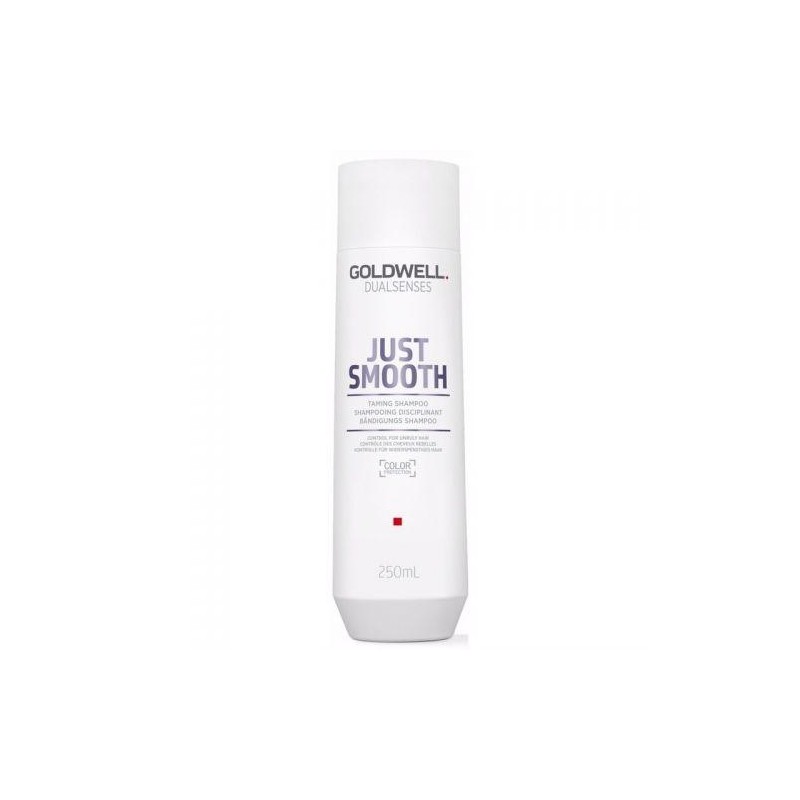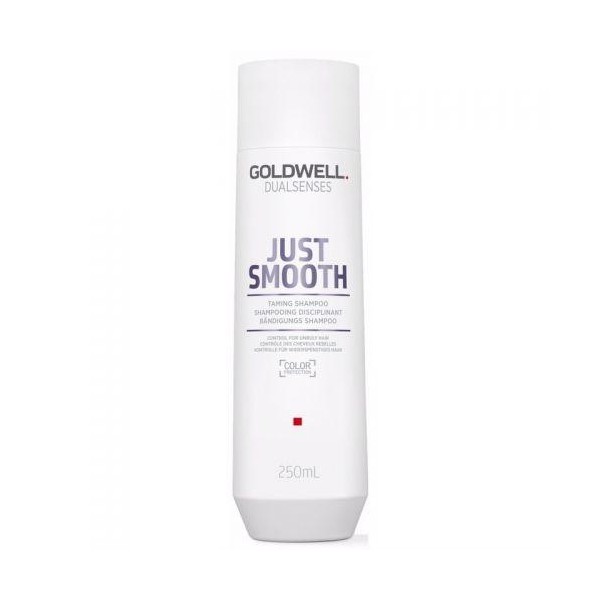 Goldwell Dualsenses Just Smooth Taming Shampoo 300ml is a gentle shampoo that instantly creates manageability and frizz control for unruly hair while minimizing color fading with every use.