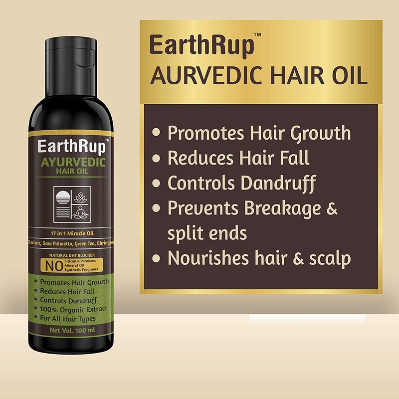 - Ayurvedic Hair Oil is enriched with the goodness of Onion, Almond, Amla, Methi, Bhringraj, Green Tea, Henna, Moringa, Dudhi, Shikakai, Extract and natural DHT blocker Saw Palmetto.