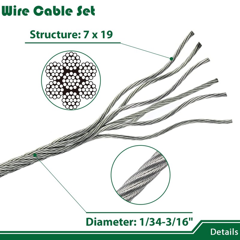 - Breaking Strength: There are 7 steel wires in each wire rope. This 7x19 stand core is tightly wound and has a strong load-bearing capacity. Wire rope kit has a breaking strength of 4200 pounds and safety working with 850 pounds.