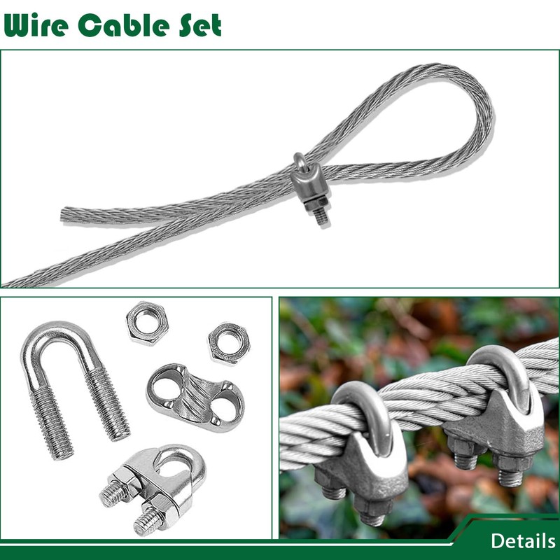 • Stable and Wind Resistant: Shade sail hardware kit includes 1FT stainless steel wire rope and 8 clamps. 3/16" diameter. Suitable for windy areas or large fixed devices such as sunshades, pergolas, and awnings.
