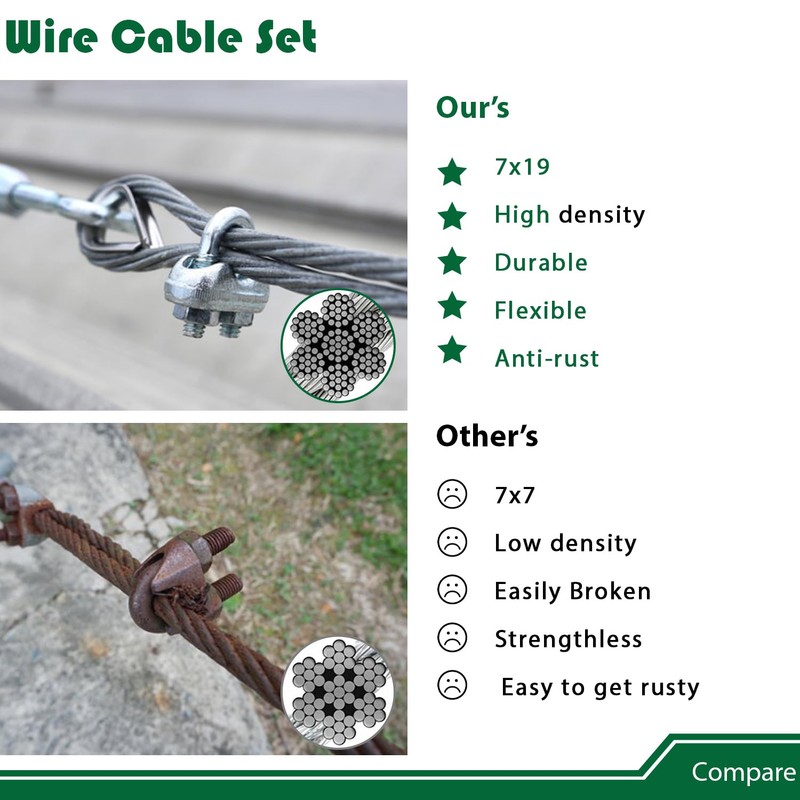 • Multifunctional: Heavy-duty sunshade hardware kit is a multi-purpose electrical wire for gardens, houses, farms, and courtyards. Coated Steel cable can also serve as a clothesline and deck railing, or hanging Halloween Christmas decorations.