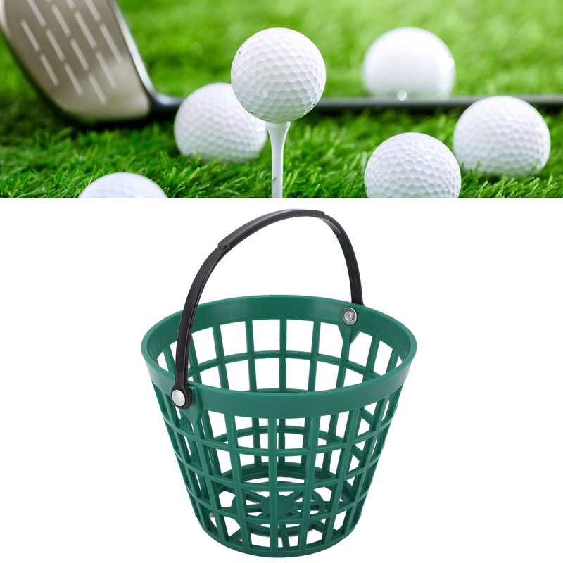 Golf Ball Basket Golfball Container with Handle Nylon Plastic Golf Ball Bucket Green Holds Up to 25pcs