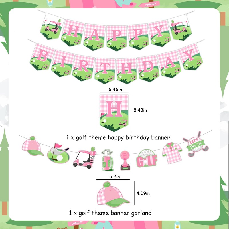 Golf Theme Party Decorations Girl Includes: 1 x pink happy birthday banner 1 x golf theme banner garland