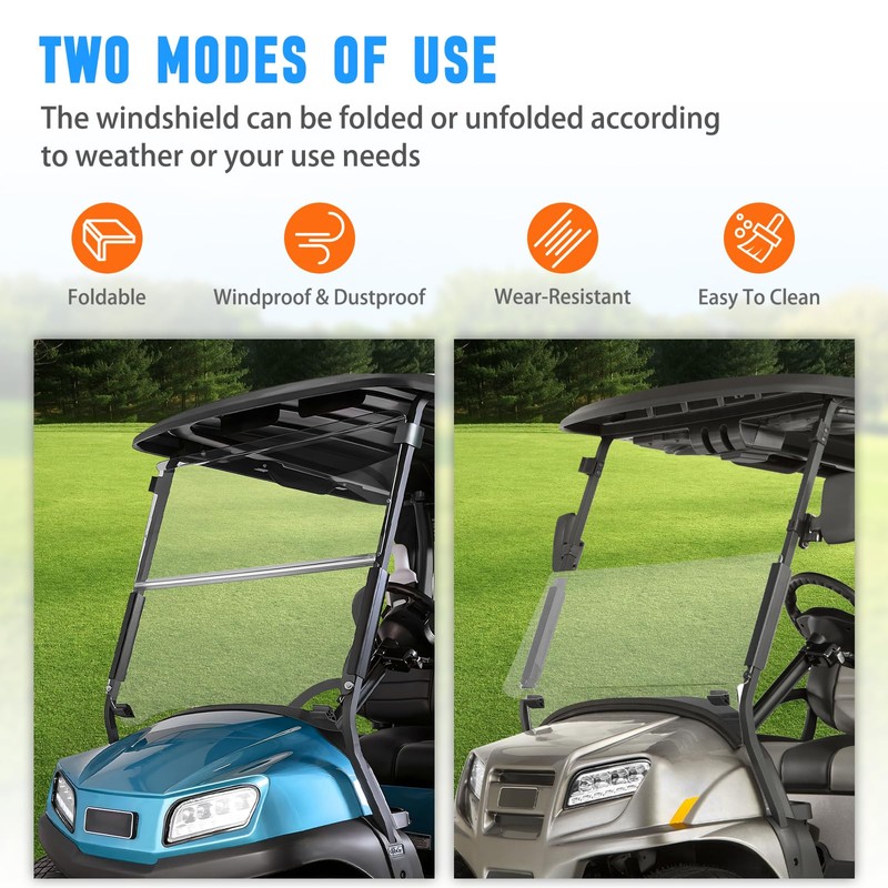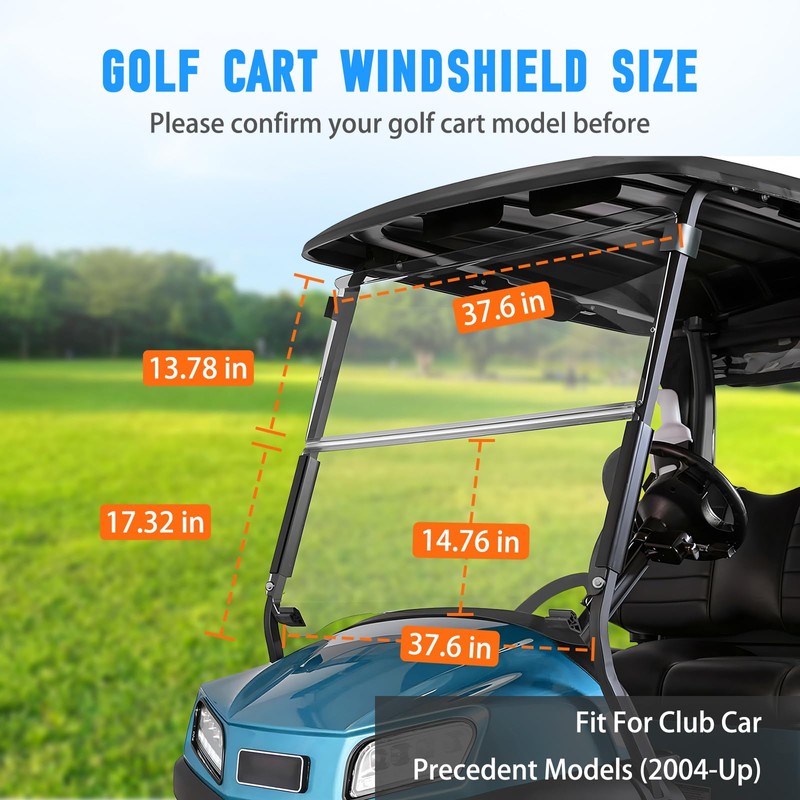 - Compatibility Information: This golf cart windshield is designed for club car precedent from 2004 to up, and is compatible with both gas and electric-powered golf carts. It is not suitable for modified carts. Please ensure to purchase based on your golf cart model number to guarantee compatibility.