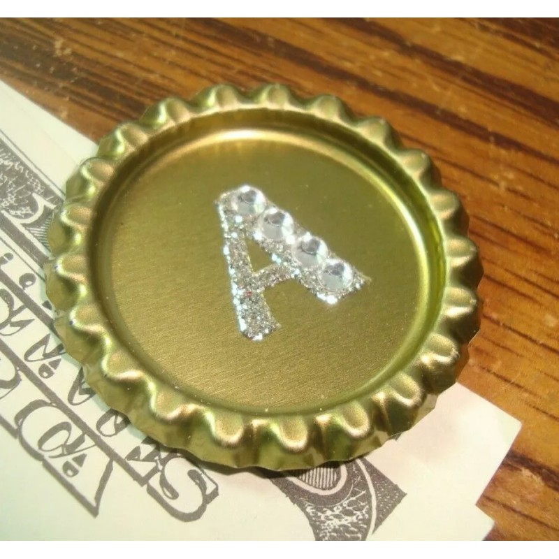 - Material: Bottle Cap, Gold rhinstones, Aluminum