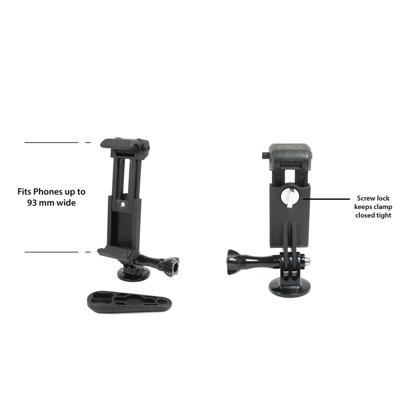 Add this high quality phone mount to any of the Golf Gadgets Swing recording systems for use with any phone model up to 93mm wide. This will work with an iPhone 6 Plus, or Galaxy Note. Get a solid grip on your Smartphone to record your swing while practicing. The phone holder screws in place tightly for increased stability and control, making it easy to aim the camera and frame your shots with confidence. Why risk dropping your device while recording your swing, or playing golf? Golf Gadgets make it easy to share video, or immersive live streaming video with your followers on FB live, or just take pictures via camera timer app. Now you can easily record your swing for analysis, without the risk of dropping your phone. Don't miss another opportunity to enhance your game, make a cool video, or capture pictures for social media.