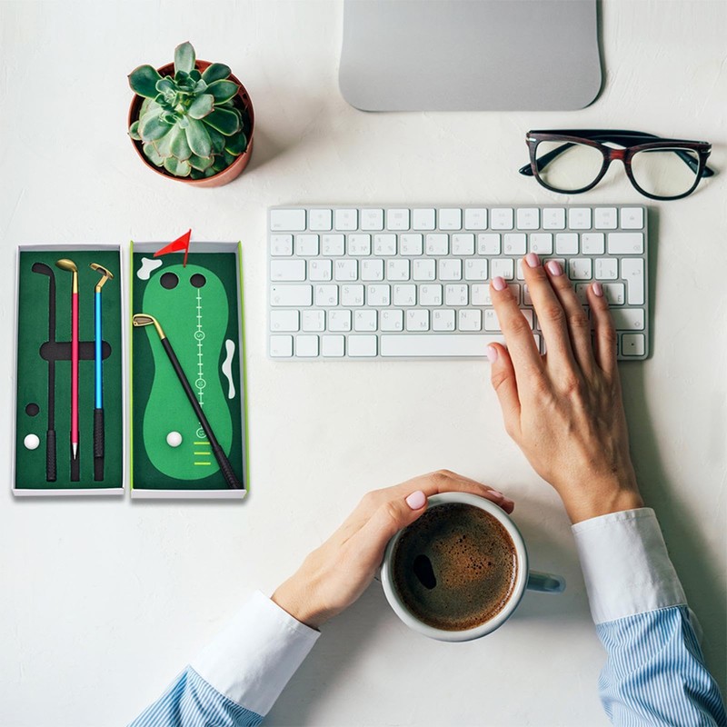 - ♛Innovative Design: Take a swing at creativity with this unique golf pen set. Designed to resemble golf clubs and putting green, it makes every writing experience fun and inspiring.